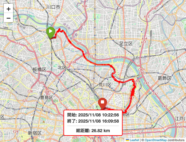 移動サマリー 写真に記録されたGPS情報に基づき、2025/11/08 10:2 続きを読む 2025年11月08日の散歩記録→