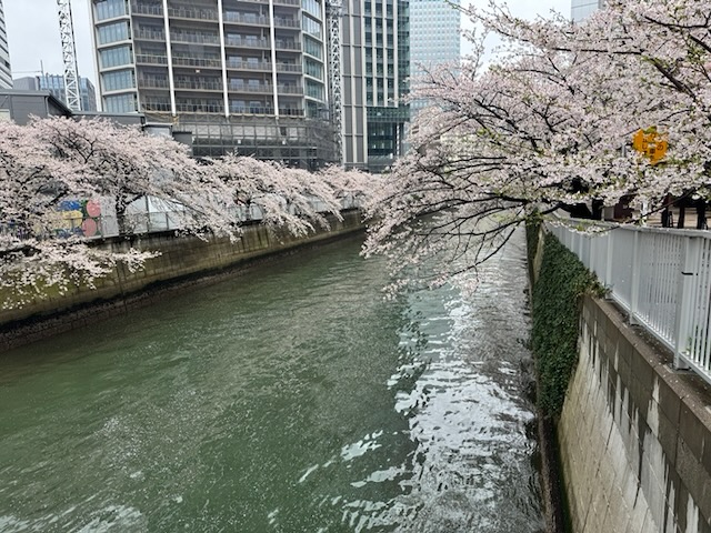 桜の名所は混雑していると思ったので、見慣れた五反田から大崎までの目黒川沿いを散歩。